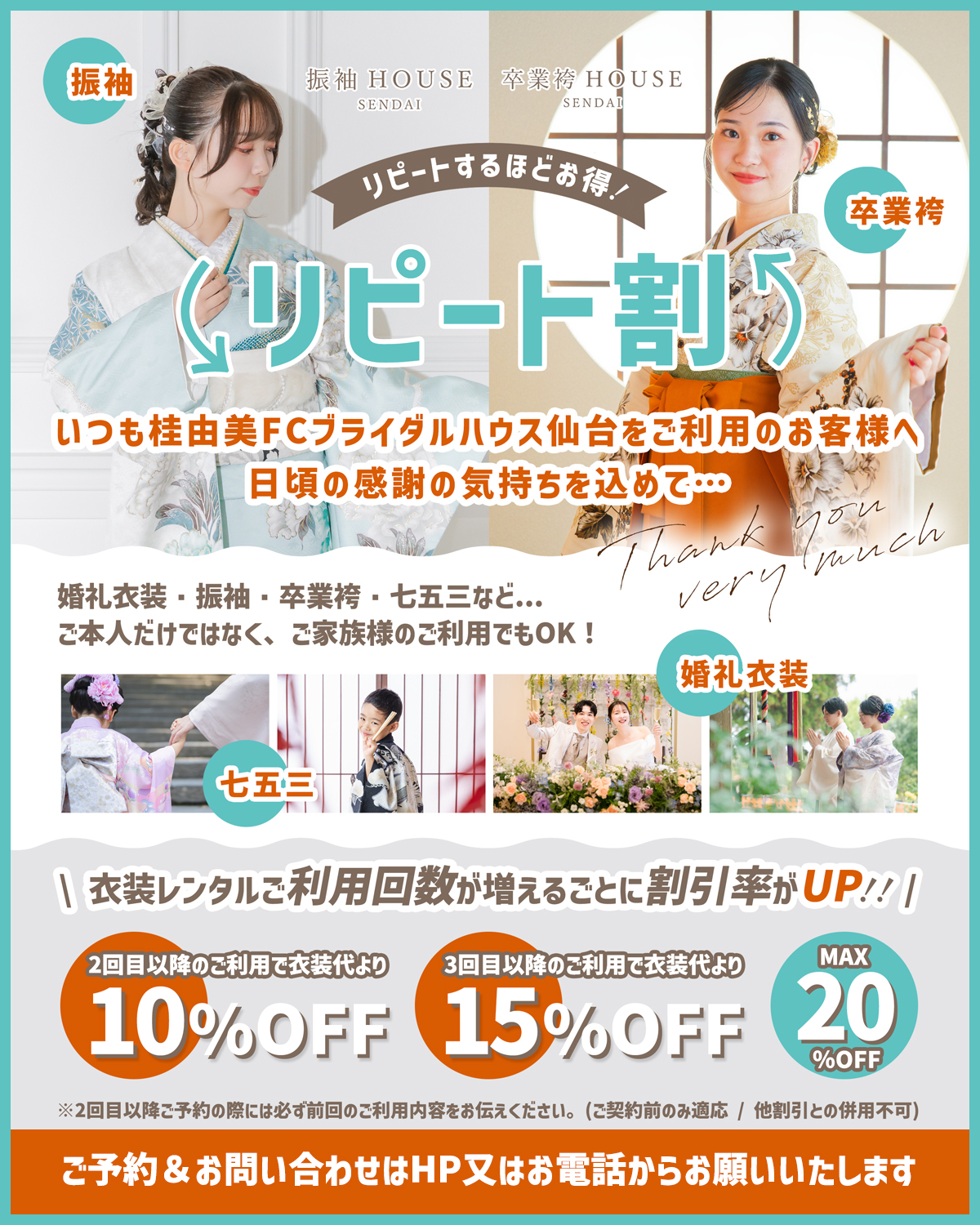 いつも卒業袴ハウス仙台をご利用いただき、誠にありがとうございます。